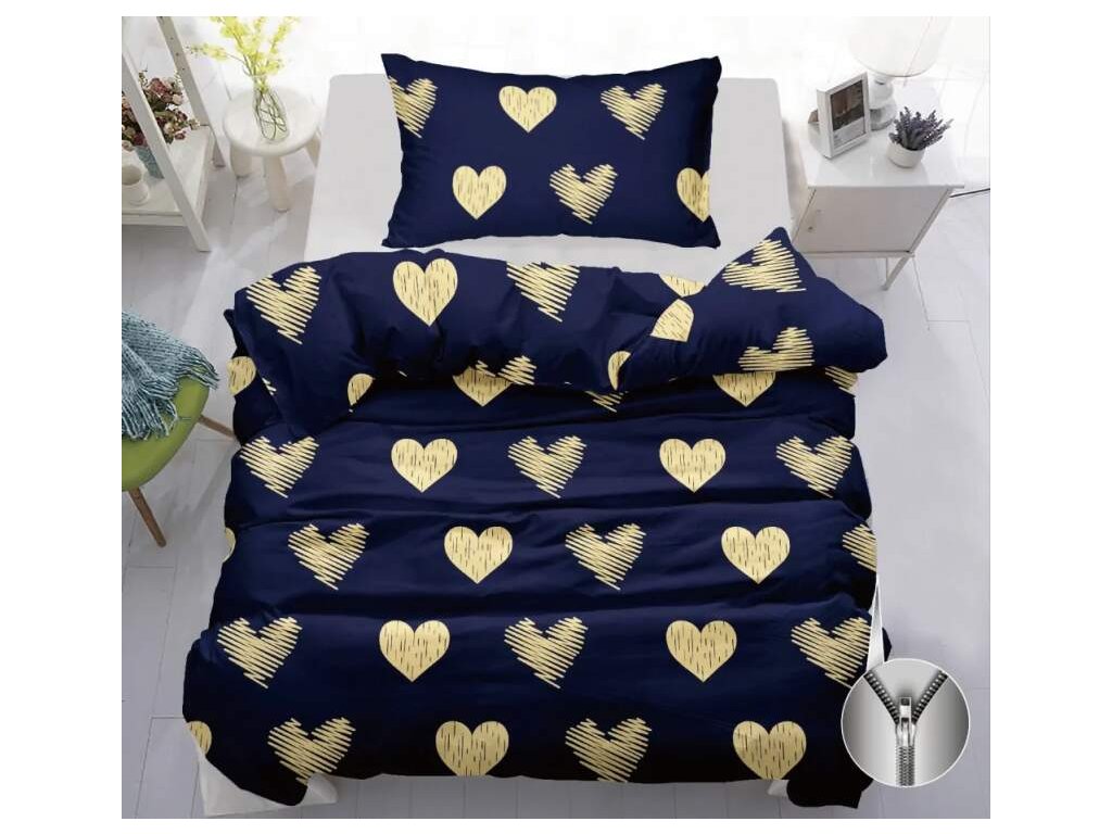 ! AKČNÍ VÝPRODEJ ! BAVLNĚNÉ POVLEČENÍ 140x200/70x90 cm - SRDÍČKA ZLATÁ