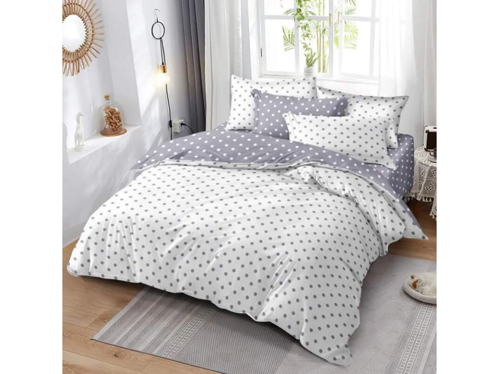 ! AKČNÍ VÝPRODEJ ! LUXUSNÍ BAVLNĚNÉ OBOUSTRANNÉ POVLEČENÍ S PUNTÍKEM - ŠEDO - BÍLÉ - FRANCOUZSKÉ - 200x220cm + PROSTĚRADLO ZDARMA !