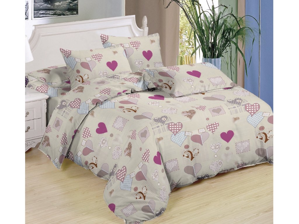 7 dílné povlečení na 2 postele 140x200/ 70x90 - SRDÍČKA III. + prostěradlo ZDARMA
