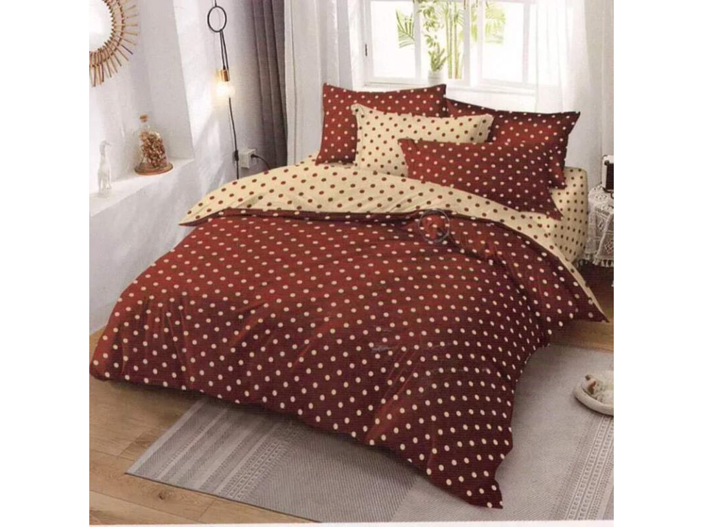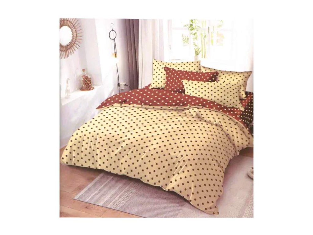 AKČNÍ VÝPRODEJ! LUXUSNÍ BAVLNĚNÉ OBOUSTRANNÉ POVLEČENÍ DUO PUNTÍKY HNĚDO - BÉŽOVÉ 70x90/140x200cm + PROSTĚRADLO ZDARMA !