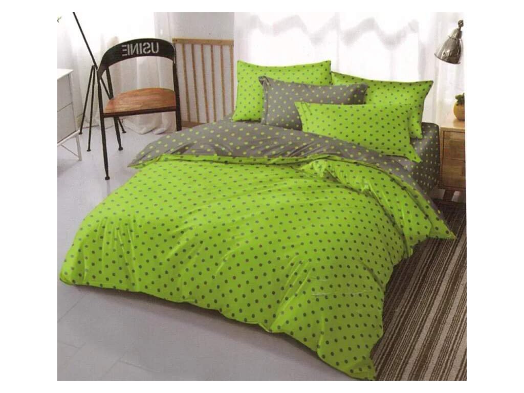 AKČNÍ VÝPRODEJ! LUXUSNÍ BAVLNĚNÉ OBOUSTRANNÉ POVLEČENÍ DUO PUNTÍKY ŠEDO - ZELENÉ 70x90/140x200cm + PROSTĚRADLO ZDARMA !