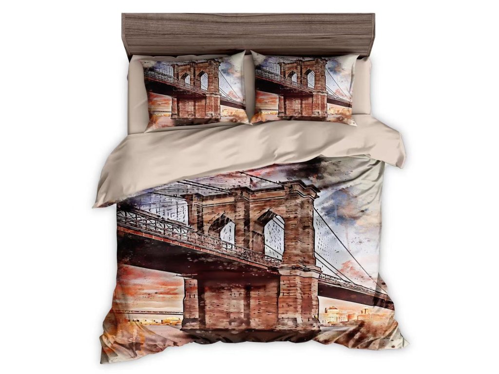 AKČNÍ VÝPRODEJ! Sada povlečení s 3D EFEKTEM na 2 postele BROOKLYN BRIDGE + PROSTĚRADLO ZDARMA
