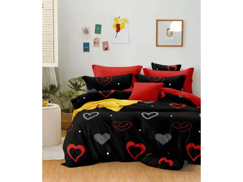 LUXUSNÍ BAVLNĚNÉ POVLEČENÍ SRDÍČKA LOVE ČERNO - ČERVENÉ na 2 postele 140x200/ 70x90 + prostěradlo ZDARMA !