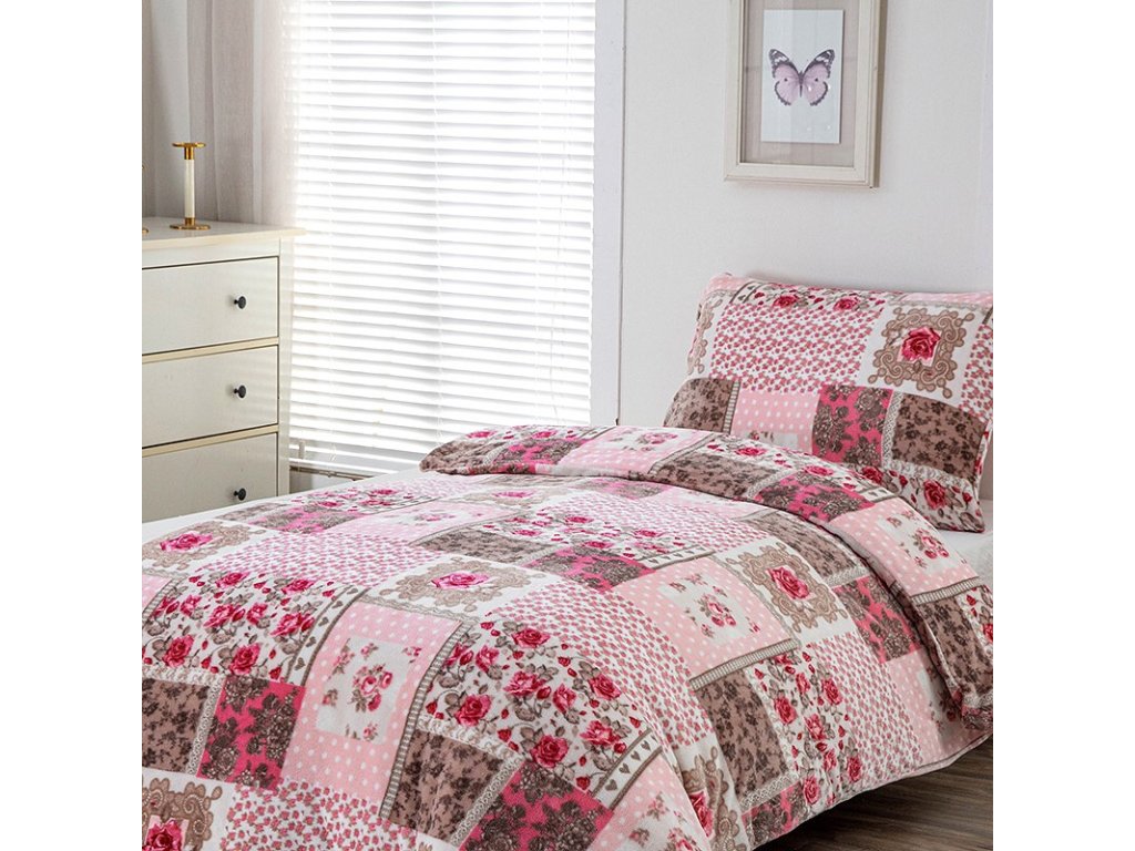 Novinka 2025 – Mikroplyšové / Flanelové povlečení 140×200/70×90 cm - PATSCHWORK RŮŽOVÝ