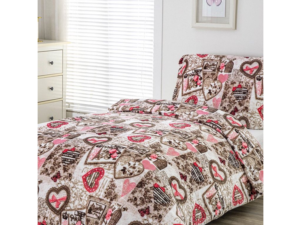Novinka 2025 – Mikroplyšové / Flanelové povlečení 140×200/70×90 cm - RŮŽOVÉ SRDÍČKA