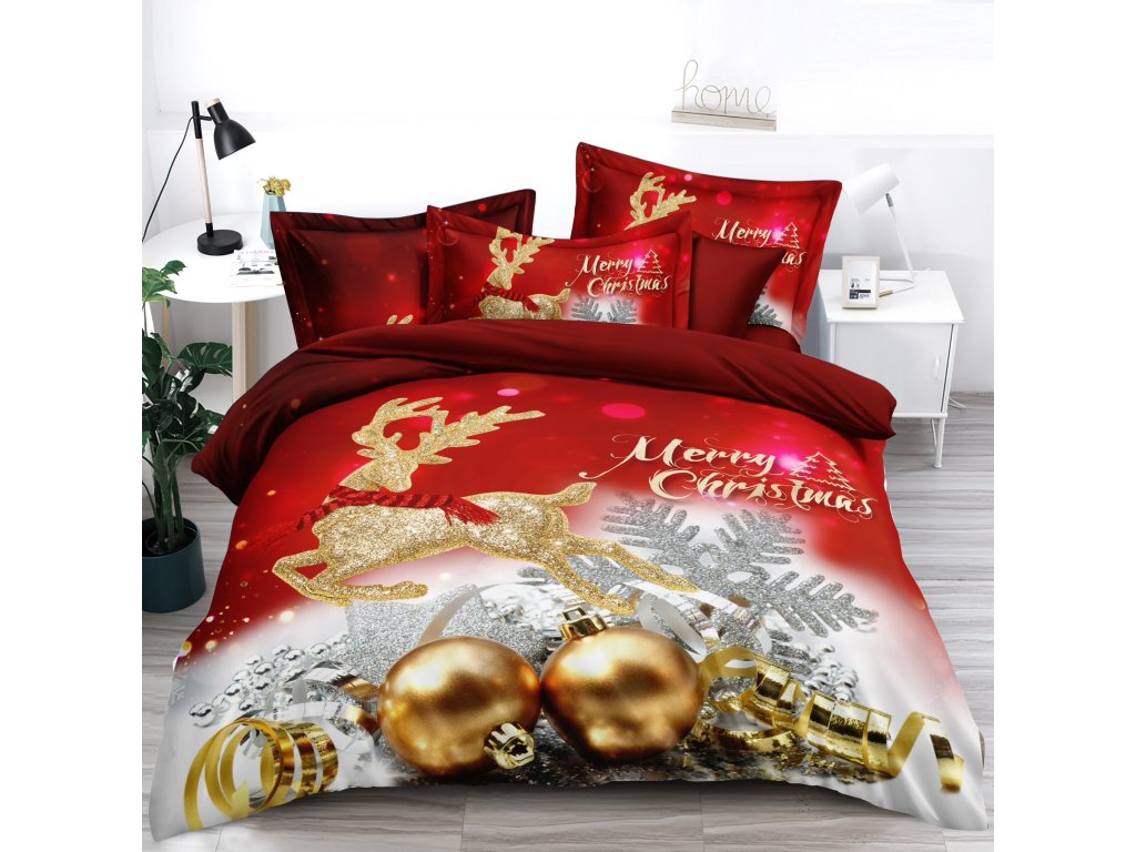 Novinka 2025! Bavlněná vánoční sada povlečení s 3D efektem 140x200/70x90 cm - VÁNOCE - MERRY CHRISTMAS č.1 + POVLAK NA POLŠTÁŘEK ZDARMA !