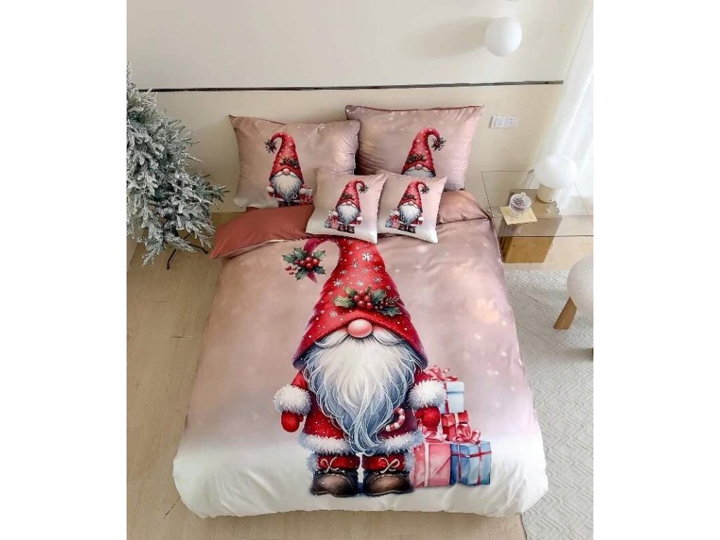 Novinka 2025! Bavlněná vánoční sada povlečení s 3D efektem 140x200/70x90 cm - VÁNOCE - MERRY CHRISTMAS Červený Skřítek 140x200/70x90cm + POVLAK POLŠTÁŘEK ZDARMA !