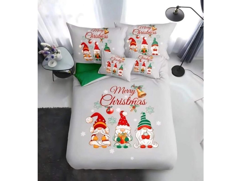 Novinka 2025! Bavlněná vánoční sada povlečení s 3D efektem 140x200/70x90 cm - VÁNOCE - MERRY CHRISTMAS Skřítci šedé 140x200/70x90cm + POVLAK POLŠTÁŘEK ZDARMA !