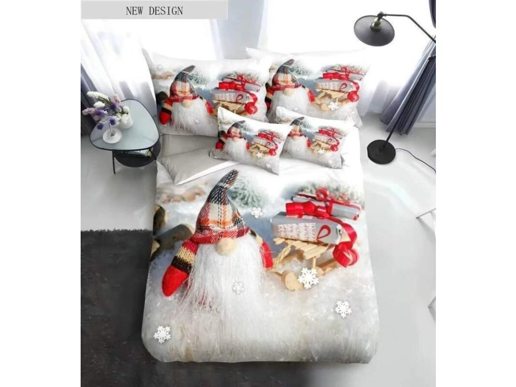 Novinka 2025! Bavlněná vánoční sada povlečení s 3D efektem 140x200/70x90 cm - VÁNOCE - MERRY CHRISTMAS Skřítek a sáňky 140x200/70x90cm + POVLAK POLŠTÁŘEK ZDARMA !