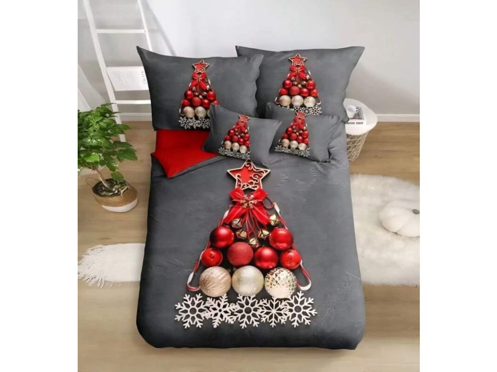 Novinka 2025! Bavlněná vánoční sada povlečení s 3D efektem 140x200/70x90 cm - VÁNOCE - MERRY CHRISTMAS Stromeček z ozdobiček šedý 140x200/70x90cm + POVLAK POLŠTÁŘEK ZDARMA !