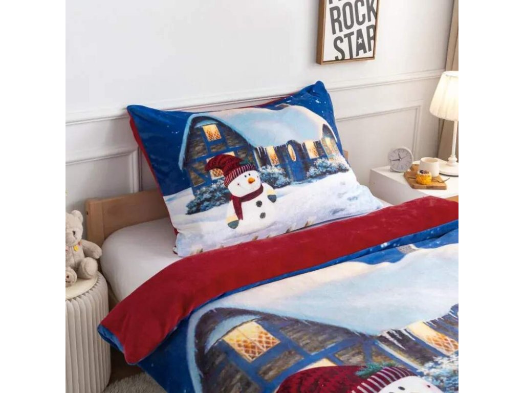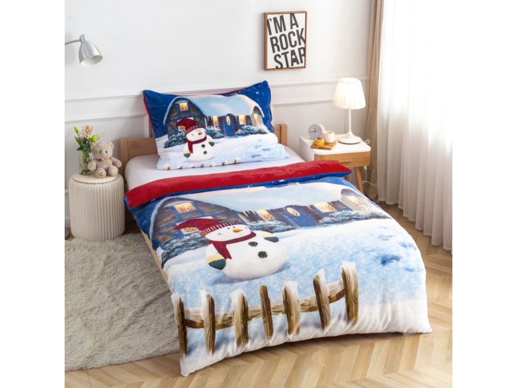 Novinka 2025! Luxusní ložní souprava mikroplyš s 3D efektem – 70×90 / 140×200 cm - ZIMA - SNĚHULÁK