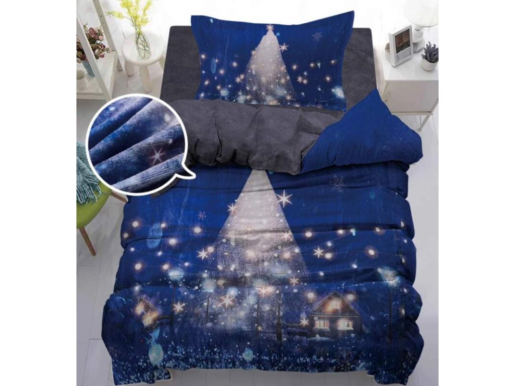 🎄 NOVINKA 2025 – Mikroplyšové povlečení s 3D efektem 70x90/140x200 cm – VÁNOCE - STROMEČEK MODRÝ 🛏️