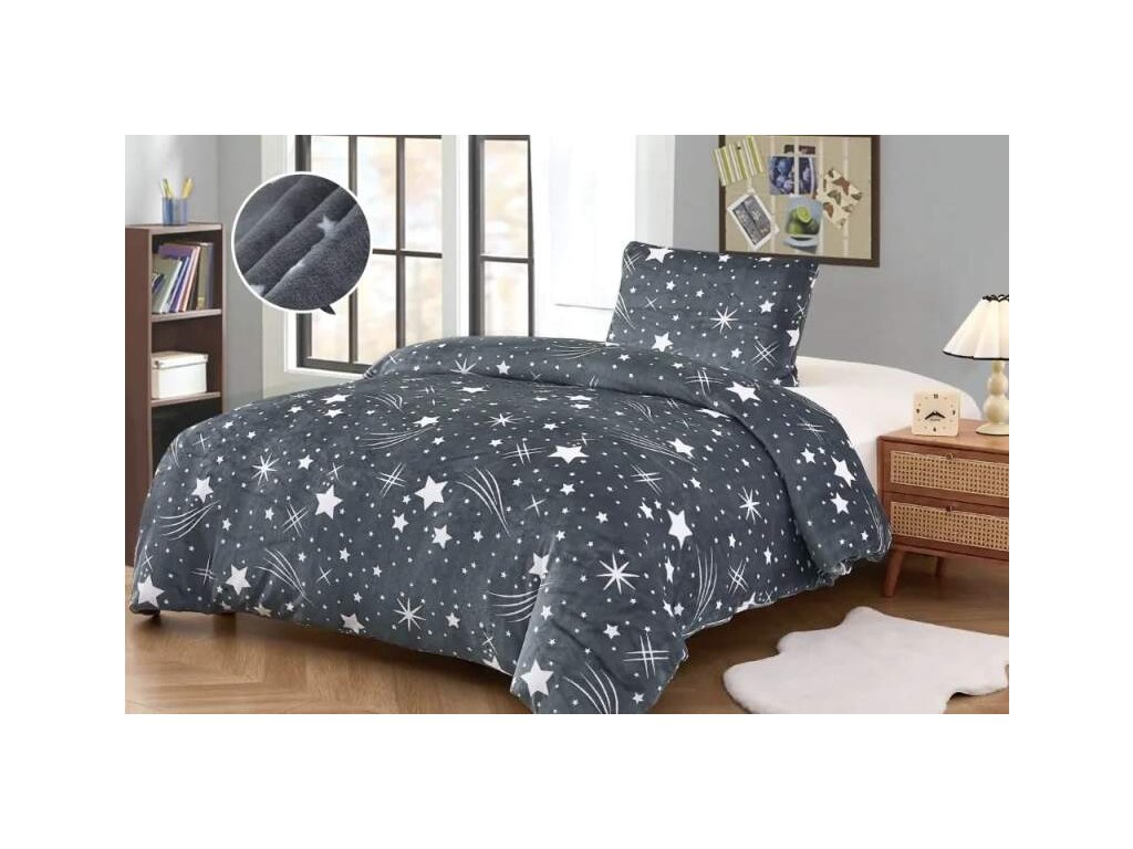 💙 Povlečení mikroplyš na 2 postele – KOMETKY ŠEDÉ