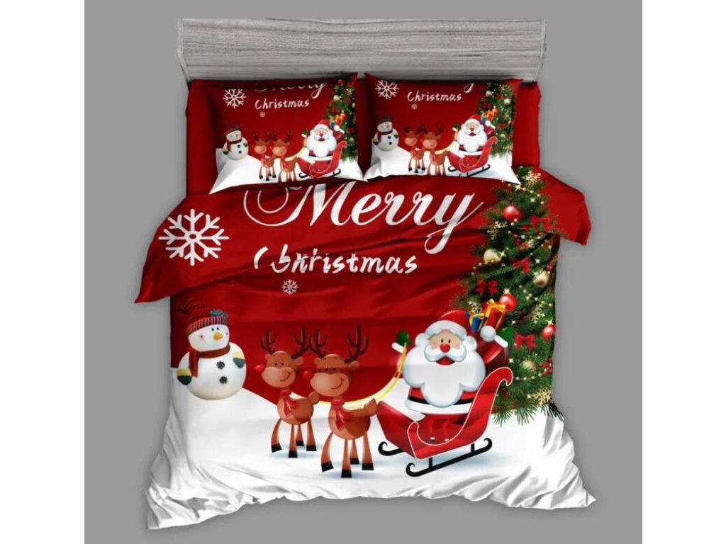 Novinka 2025! Sada vánočního bavlněného povlečení s 3D efektem pro 2 postele 140x200/70x90 cm – VÁNOCE / MERRY CHRISTMAS č.9 + PROSTĚRADLO ZDARMA