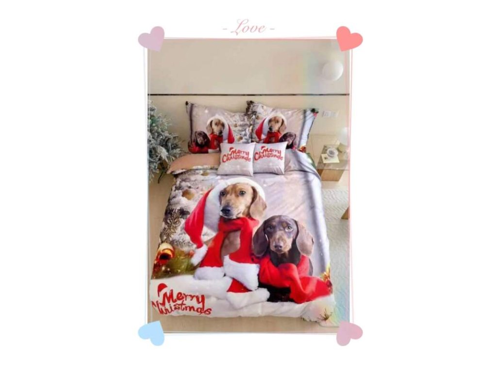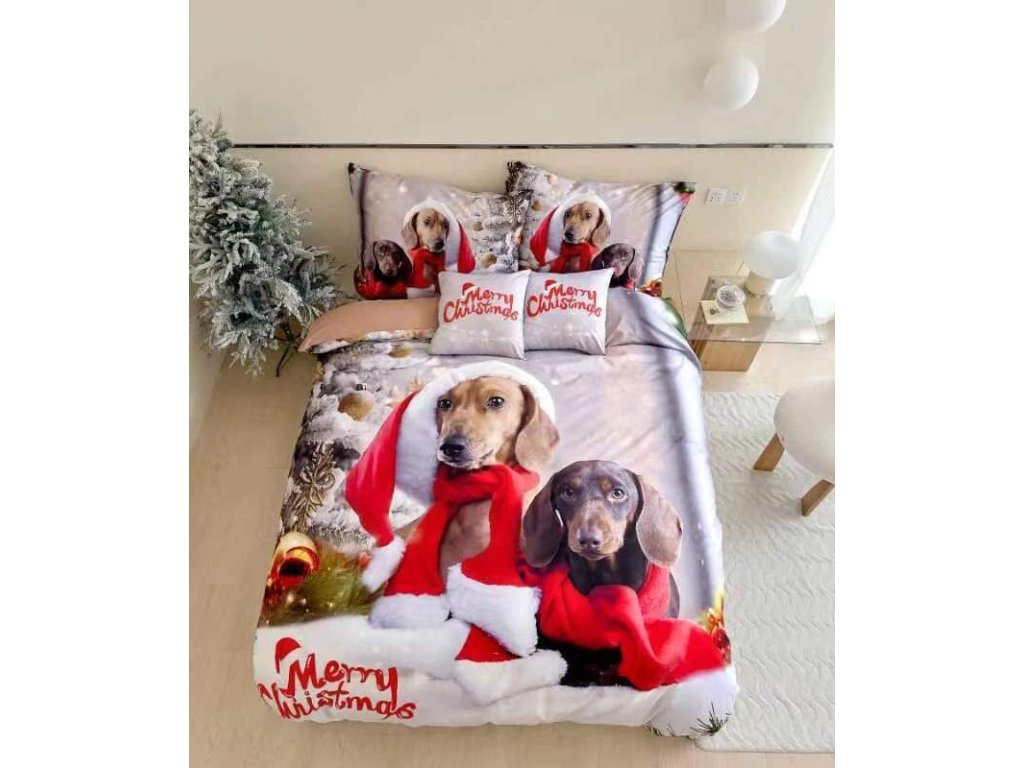 Novinka 2025! Sada vánočního bavlněného povlečení s 3D efektem pro 2 postele 140x200/70x90 cm – VÁNOCE / MERRY CHRISTMAS - JEZEVČÍCI + PROSTĚRADLO ZDARMA !