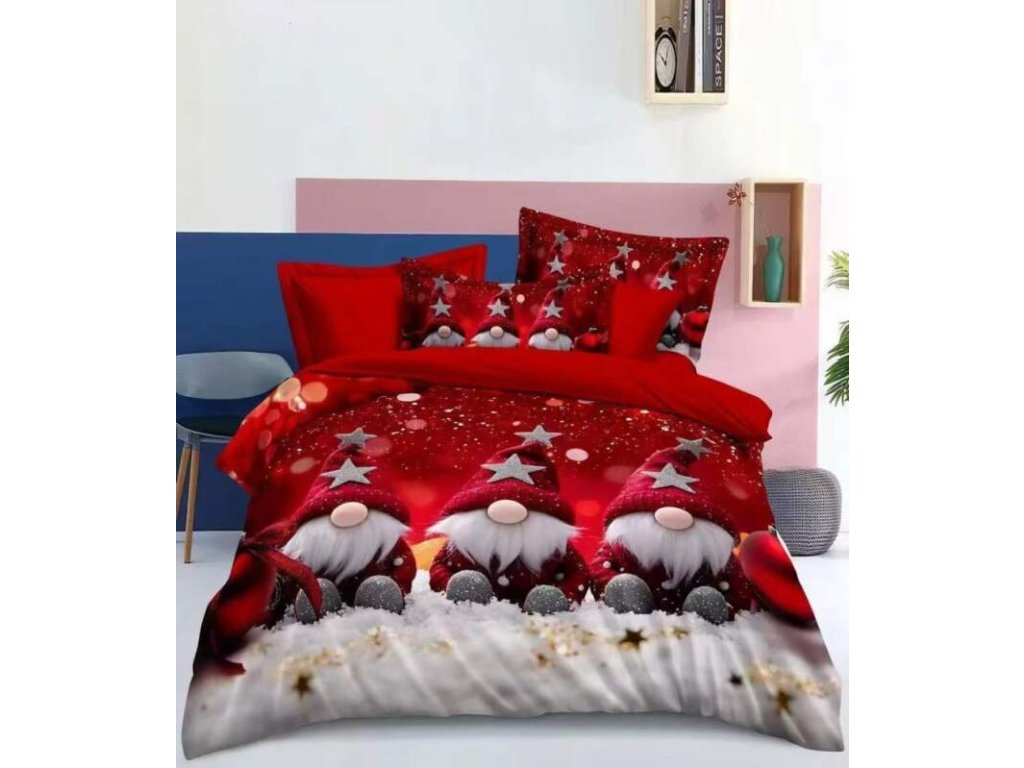 Novinka 2025! Sada vánočního bavlněného povlečení s 3D efektem pro 2 postele 140x200/70x90 cm – VÁNOCE / MERRY CHRISTMAS - Skřítci a Hvězdičky + PROSTĚRADLO ZDARMA !