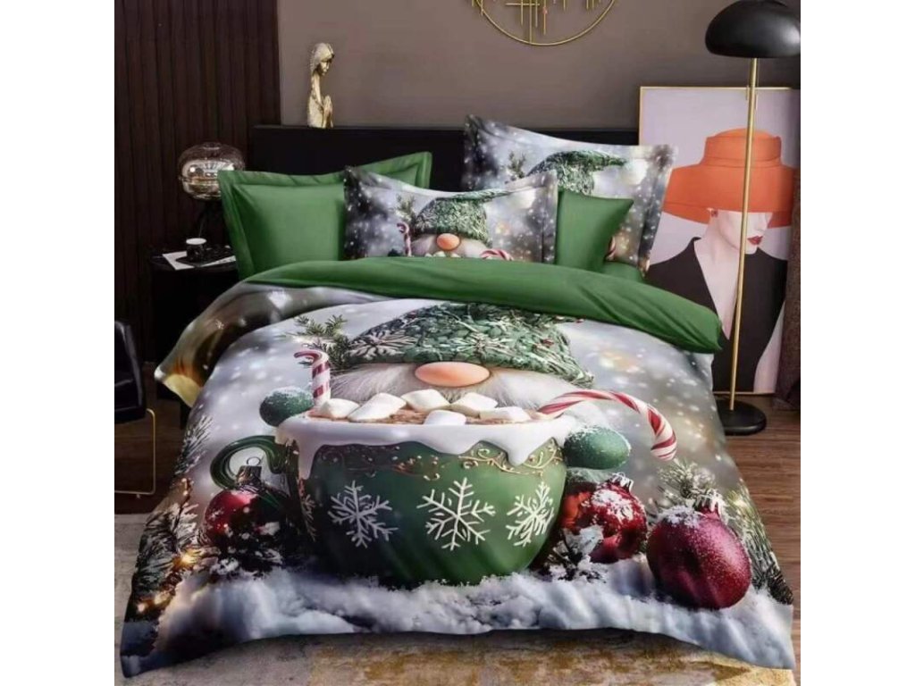 Novinka 2025! Sada vánočního bavlněného povlečení s 3D efektem pro 2 postele 140x200/70x90 cm – VÁNOCE / MERRY CHRISTMAS - Skřítek s Hrníčkem + PROSTĚRADLO ZDARMA !
