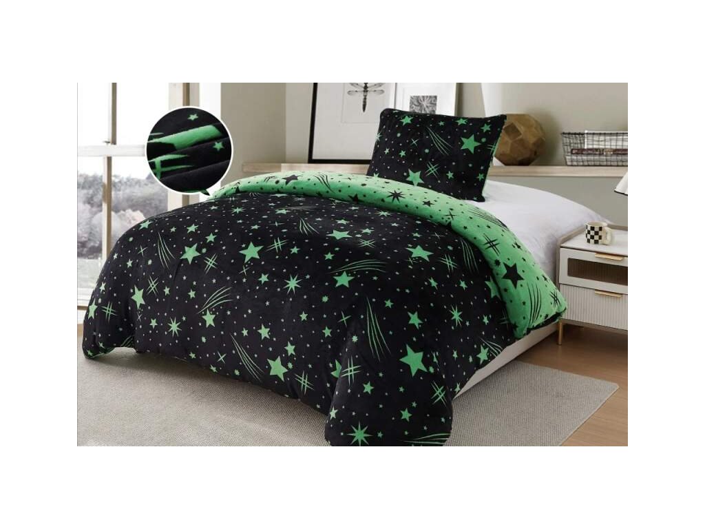 ✨ OBOUSTRANNÉ POVLEČENÍ MIKROPLYŠ NA 2 POSTELE – KOMETKY ČERNO-ZELENÉ + PROSTĚRADLO ZDARMA! ✨