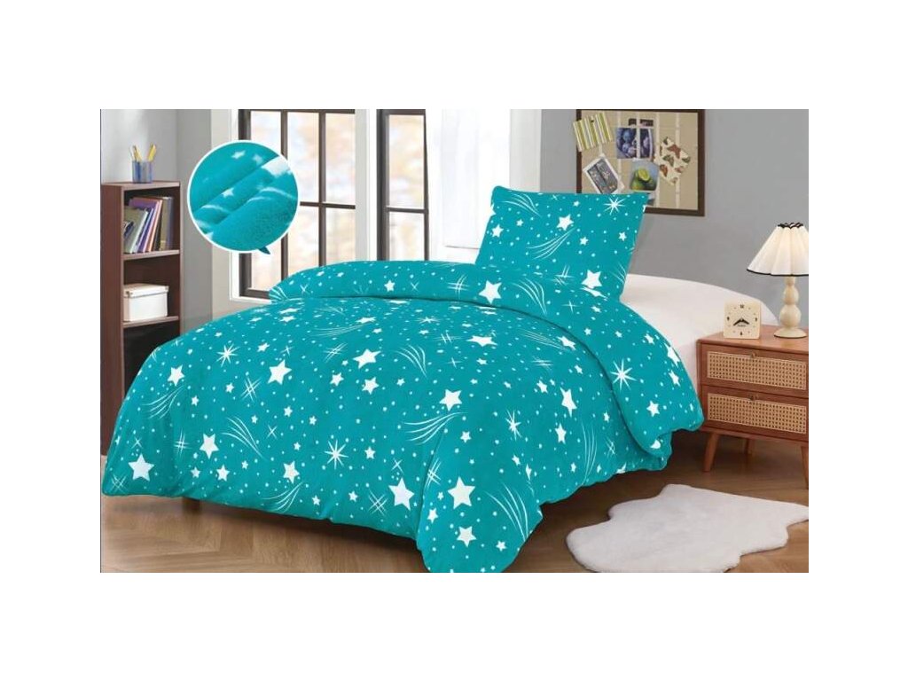 NOVINKA 2025 ! POVLEČENÍ MIKROPLYŠ 70x90/140x200cm - KOMETKY - TYRKYS