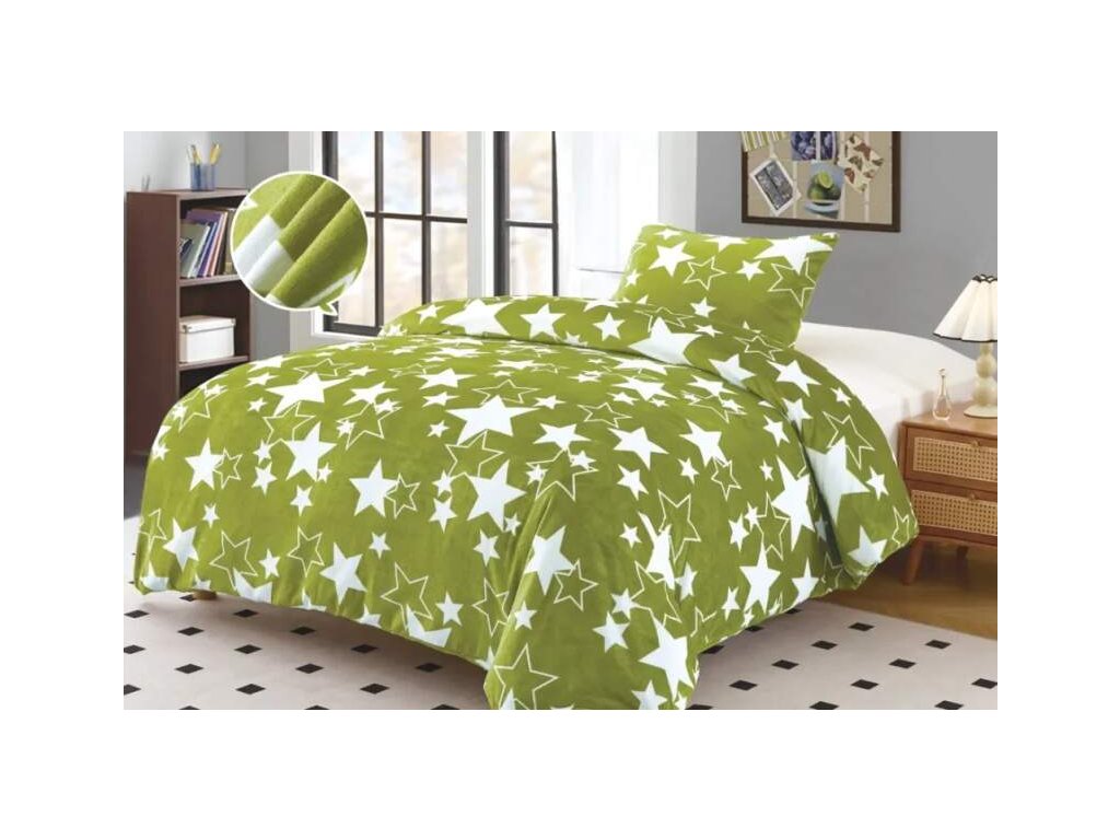 💙 Povlečení mikroplyš na 2 postele – HVĚZDIČKY ZELENÉ