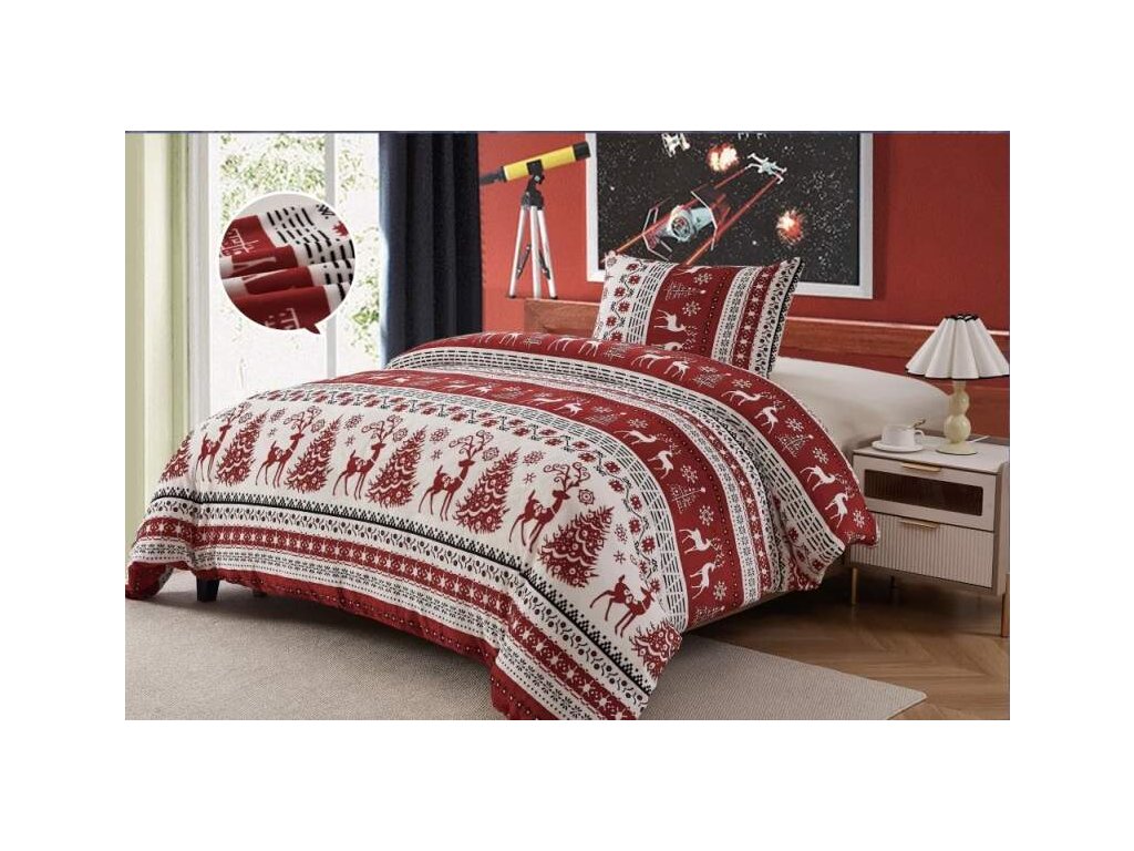 💙 Povlečení mikroplyš na 2 postele – WINTER • WINE🎁 + Napínací jersey prostěradlo 180×200 cm ZDARMA!