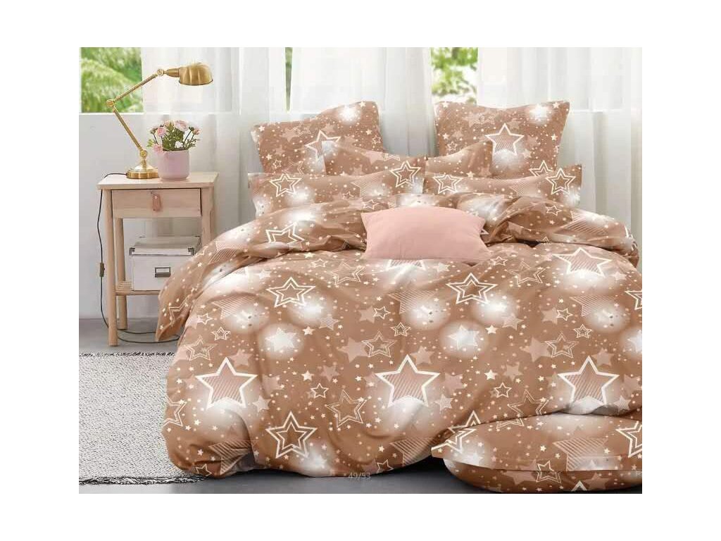 Novinka 2025 SADA BAVLNĚNÉHO POVLEČENÍ S 3D EFEKTEM NA 1 POSTEL 140x200/70x90cm – BLÝSKAVÉ HVĚZDIČKY HNĚDÉ + POVLAK NA POLŠTÁŘEK ZDARMA!