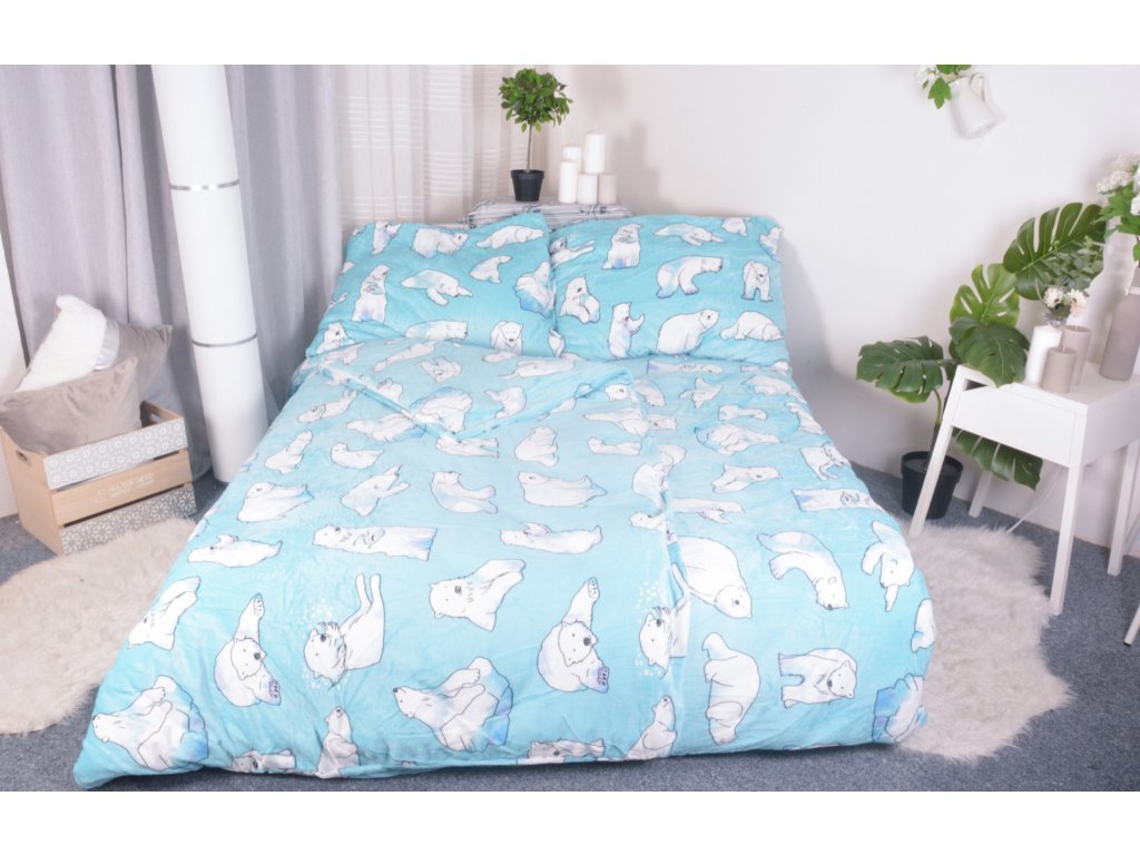 POVLEČENÍ MIKROPLYŠ NA 2 POSTELE 70x90/140x200cm - LEDNÍ MEDVĚDI + Napínací jersey prostěradlo na dvojlůžko 180x200cm ZDARMA !je ideální do chladnějšího období díky svým výborným termoregulačním vlastnostem, v létě můžete povlečení používat jen tak bez přikrývky. Povlečení mikroplyš je neuvěřitelně hebké, měkké a příjemné na dotek, jako plyšový medvídek. Mikroplyšové povlečení nestudí a velmi rychle Vás zahřeje.Sada obsahuje:2x Povlak na polštář 70x90 cm2x Povlak na přikrývku 140x200cm1x Napínací jersey prostěradlo na dvojlůžko 180x200cm ZDARMA ! (V BAREVNĚ SE HODÍCÍ K POVLEČENÍ ) ZAPÍNÁNÍ NA ZIPMateriál: mikroplyš - česané mikrovlákno (DLOUHÝ CHLUP) - 100% mikrovlákno (PES). Silný kvalitní, stálobarevný. Na omak velmi hebký a jemný. SNADNÁ ÚDRŽBA ,NEMUSÍ SE ŽEHLIT Vhodné i pro AlergikyDoplňkové parametry