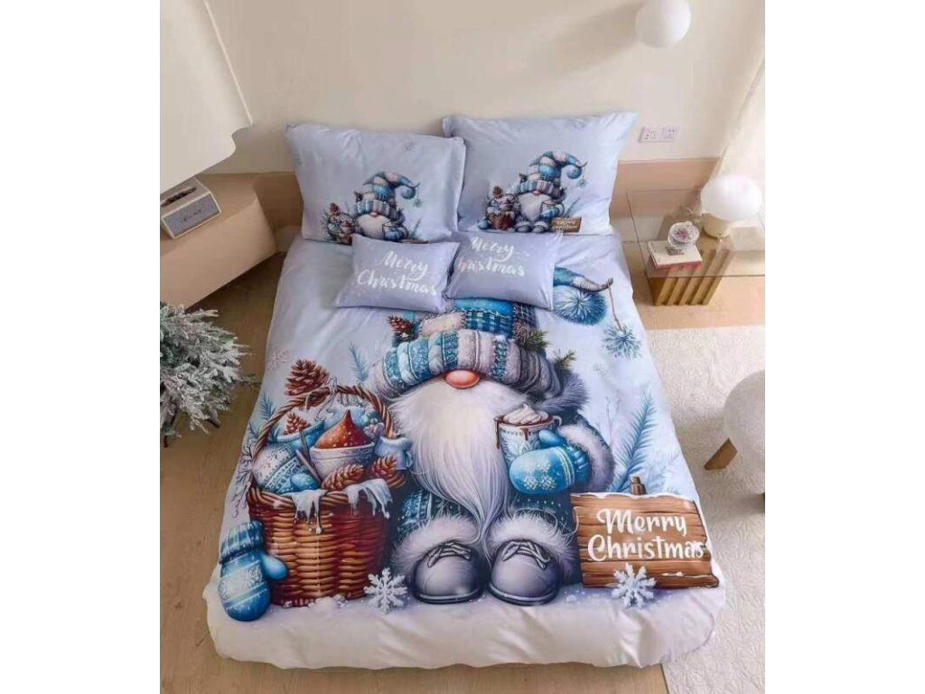 Sada vánočního Bavlněného povlečení 140x200/70x90 cm – s 3D efektem , MERRY CHRISTMAS Skřítek s košíčkem + povlak na polštářek zdarma | Novinka 2025