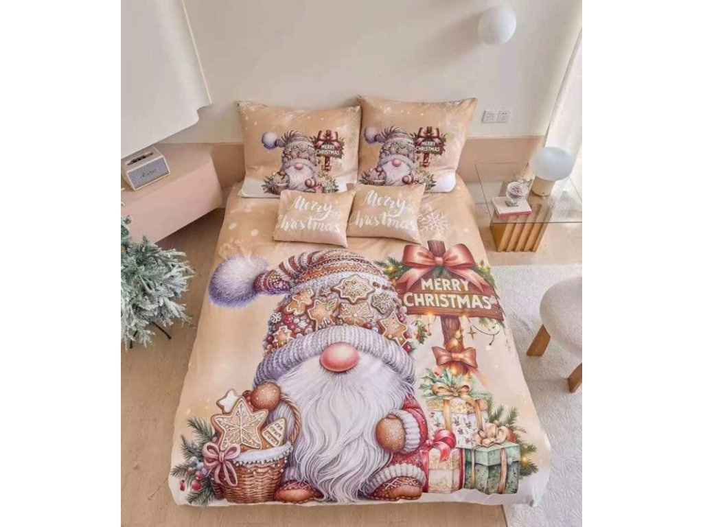 Sada vánočního Bavlněného povlečení 140x200/70x90 cm – s 3D efektem , MERRY CHRISTMAS Skřítek s perníčky + povlak na polštářek zdarma | Novinka 2025
