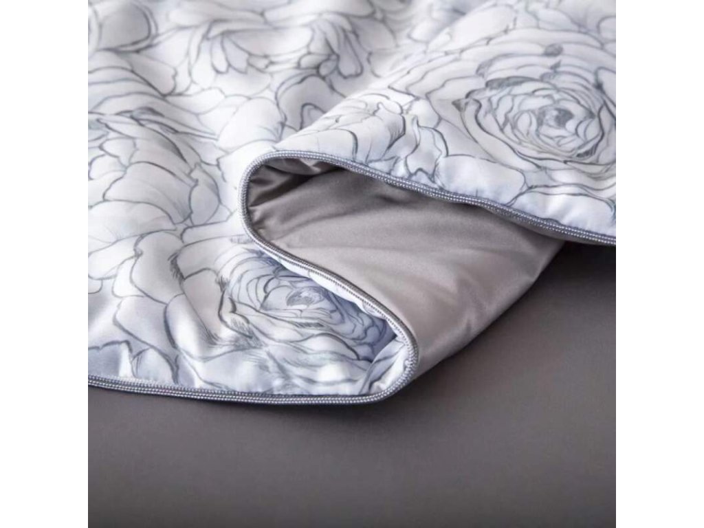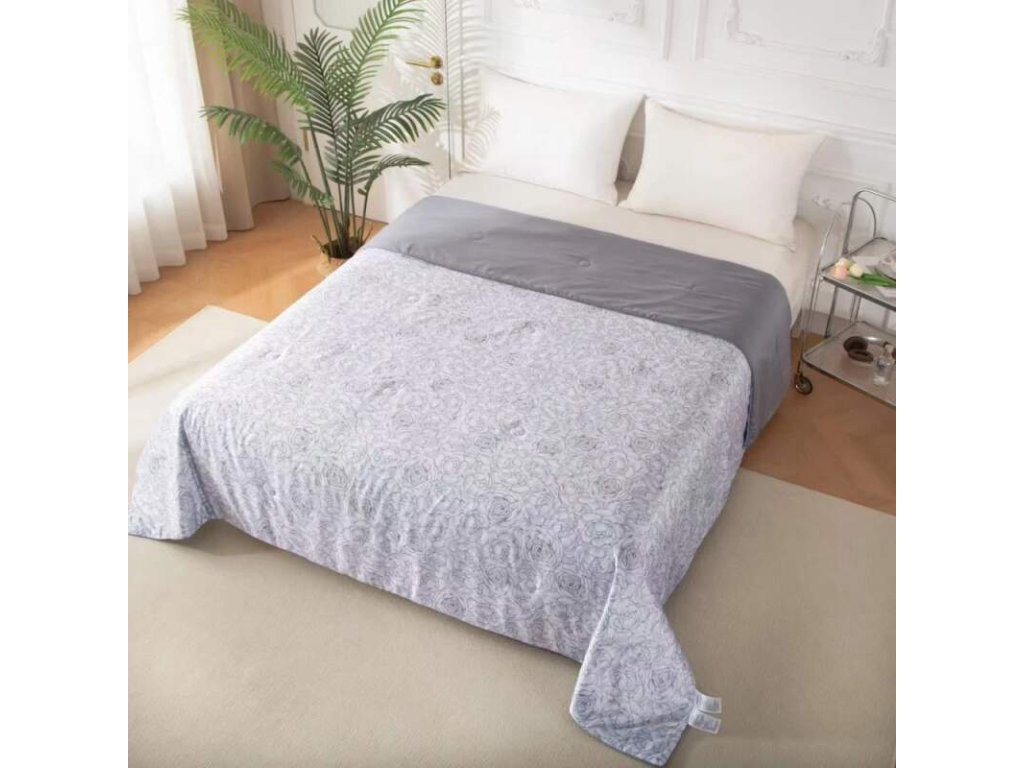Lehká a vzdušná francouzská přikrývka v tmavě šedé barvě z jedné strany a elegantním vzorem na světlém podkladu z druhé. Stylová a příjemná na dotek, perfektní pro každou moderní ložnici.