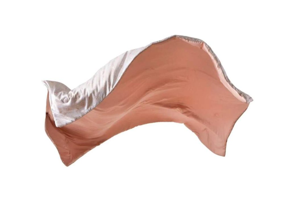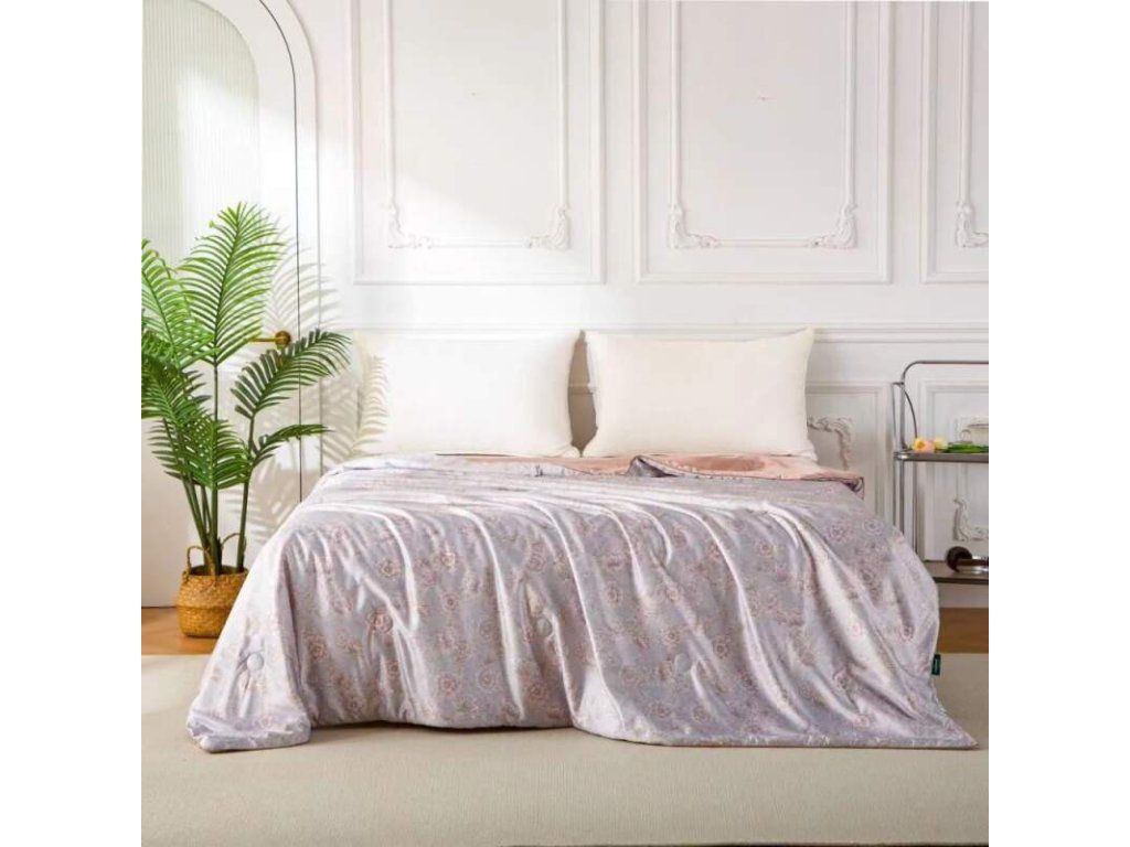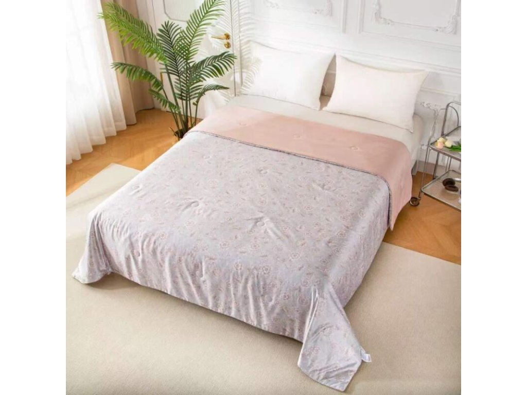 Lehká a vzdušná francouzská přikrývka v jemně růžovém odstínu z jedné strany a květinovým vzorem z druhé. Romantický a hebký doplněk do ložnice, ideální na léto.