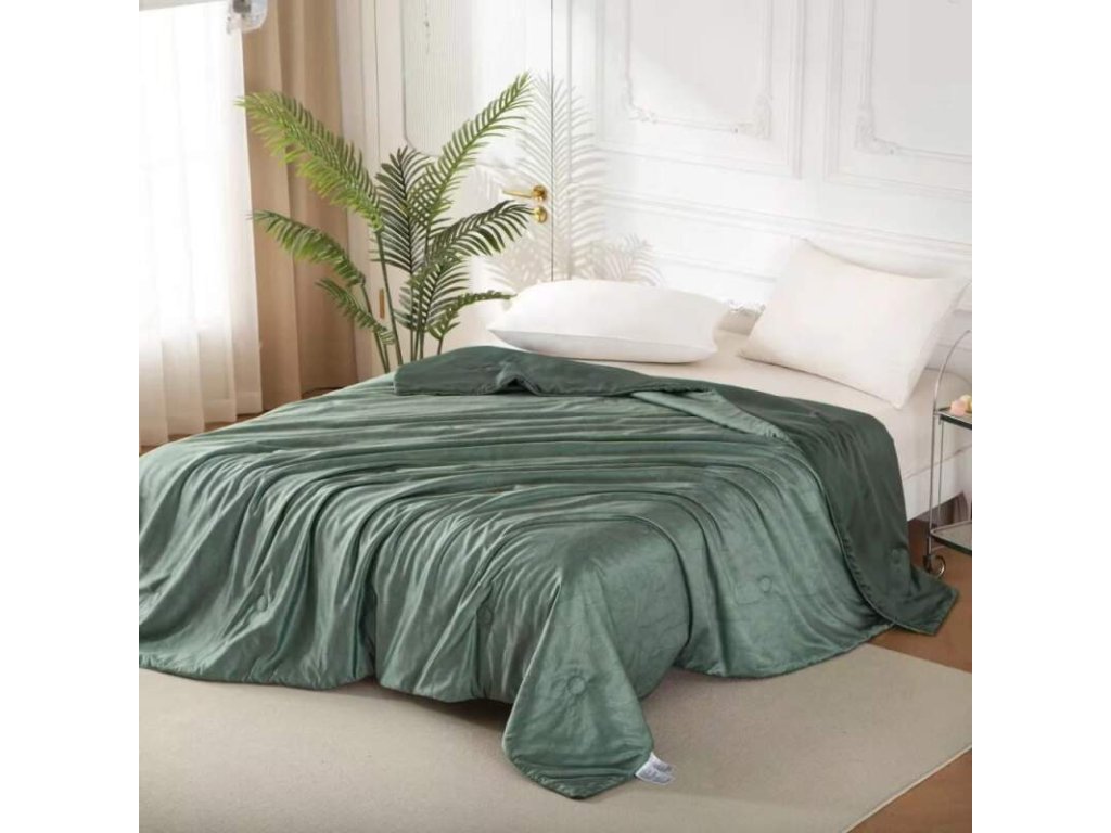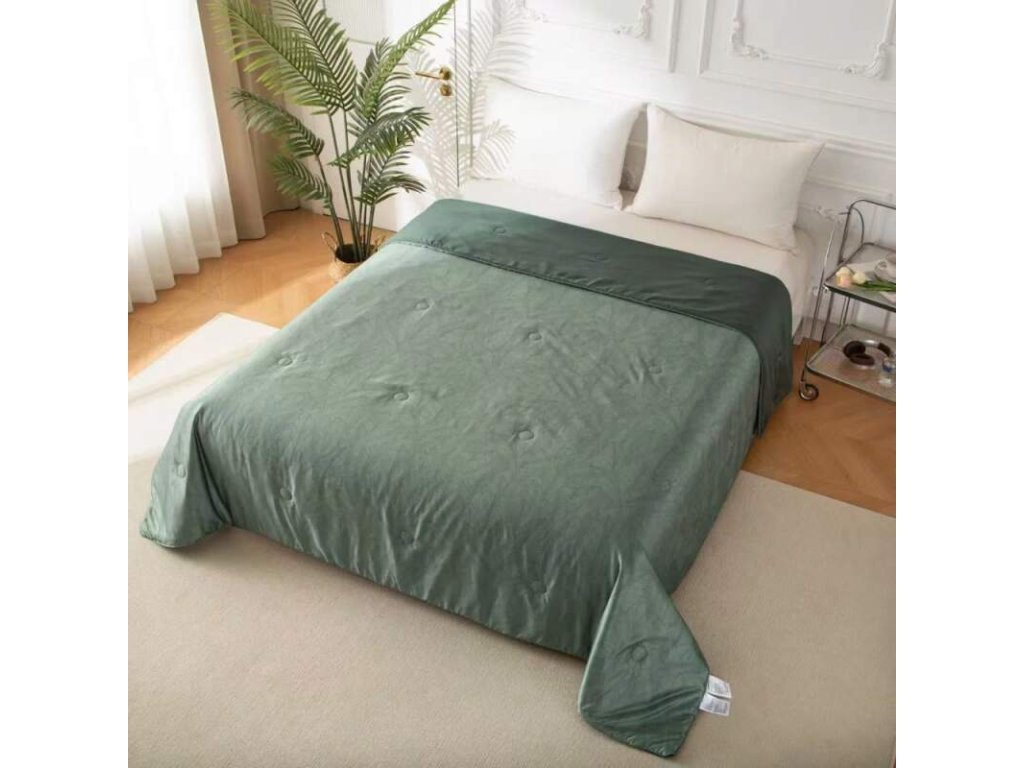 Oboustranná letní přikrývka v osvěžující zelené barvě se stylovým vzorem, která přinese do vaší ložnice přírodní klid a eleganci. Lehká, měkká a praktická – ideální na spaní i jako přehoz.