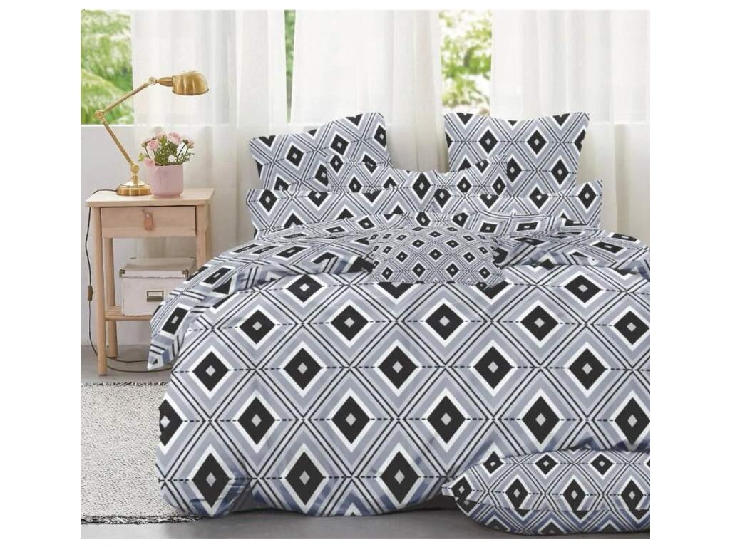 ✨ Proč si ho zamilujete?✔ Moderní a elegantní vzor kosočtverců v černé a šedé✔ Oboustranný design – dva vzhledy v jednom setu✔ Měkký, prodyšný materiál pro pohodlný spánek✔ Prostěradlo ve stejném stylu – praktický dárek zdarma
