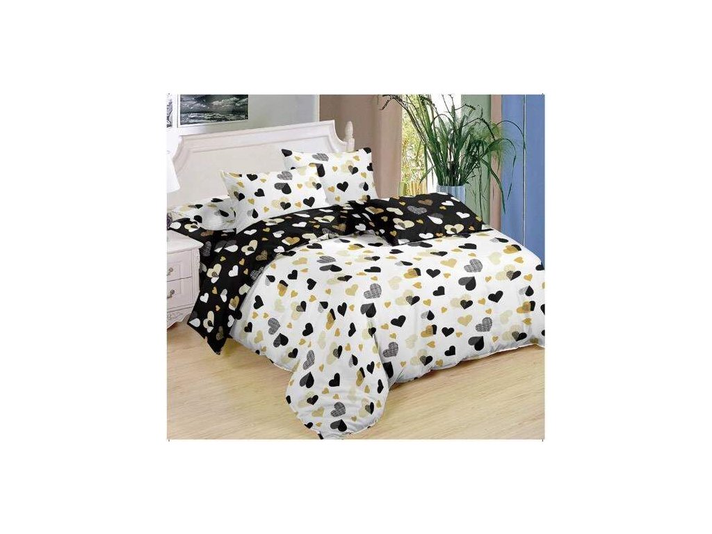 Oboustranné bavlněné povlečení na 2 postele – SRDÍČKA ČERNO-BÍLÉ🎁 + prostěradlo ZDARMA!