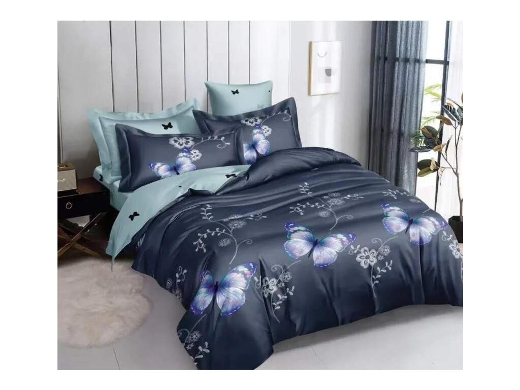 OBOUSTRANNÉ BAVLNĚNÉ POVLEČENÍ s 3D efektem na 2 postele BUTTERFLIES BLUE + PROSTĚRADLO ZDARMA !