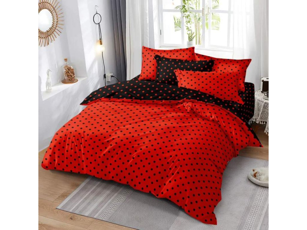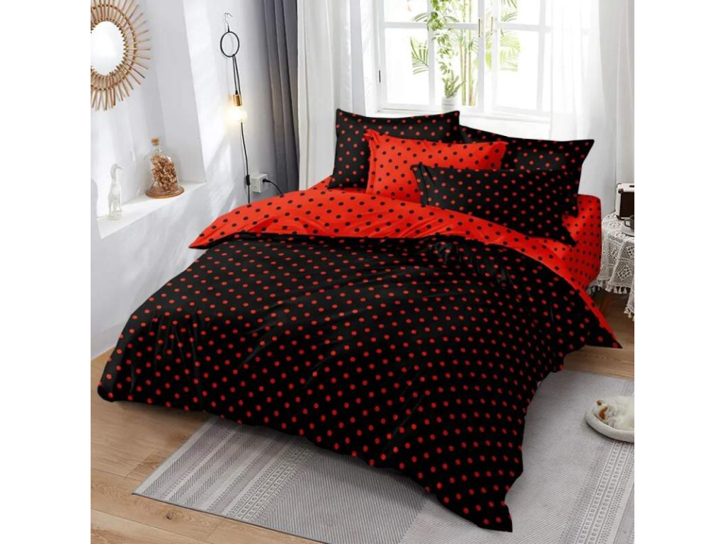 TOTÁLNÍ VÝPRODEJ! BAVLNĚNÉ OBOUSTRANNÉ POVLEČENÍ na 2 postele s Puntíkem 140x200/70x90 cm - ČERVENO - ČERNÉ + PROSTĚRADLO ZDARMA