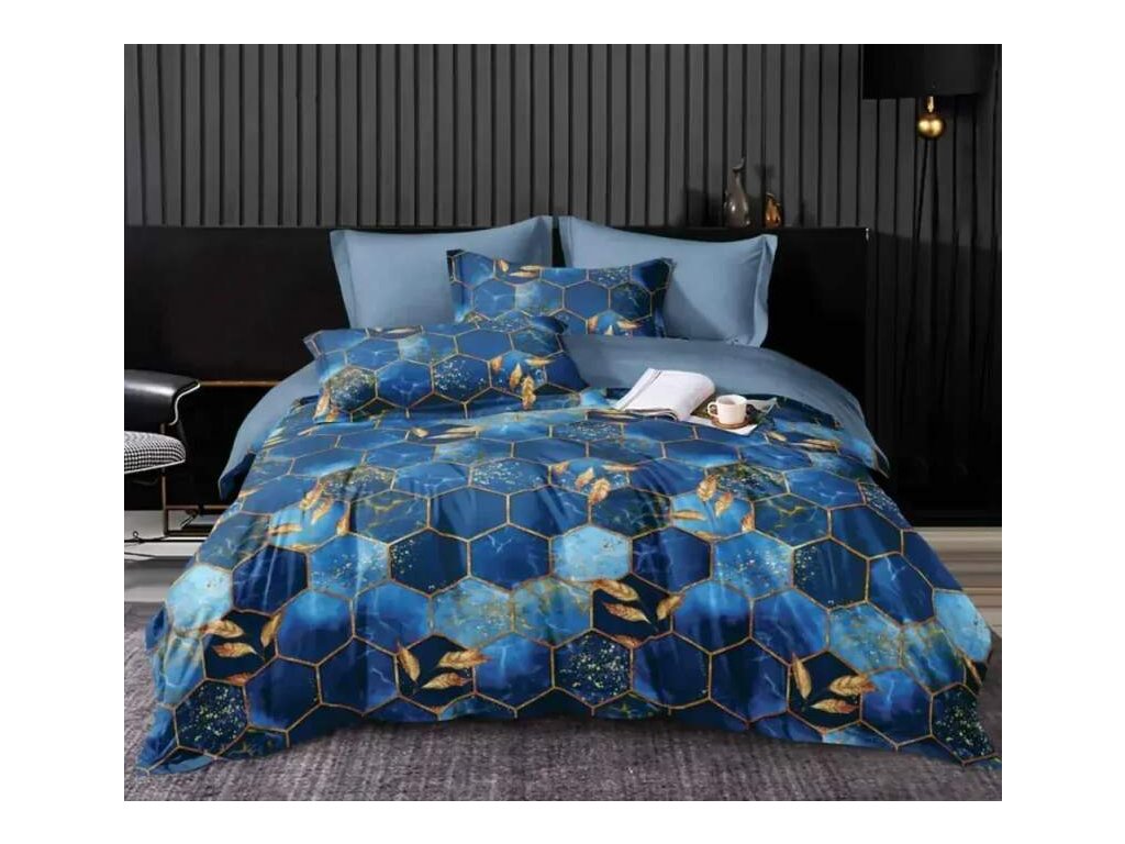 TOTÁLNÍ VÝPRODEJ ! OBOUSTRANNÉ BAVLNĚNÉ POVLEČENÍ s 3D efektem na 2 postele HONEYCOMB BLUE + PROSTĚRADLO ZDARMA !